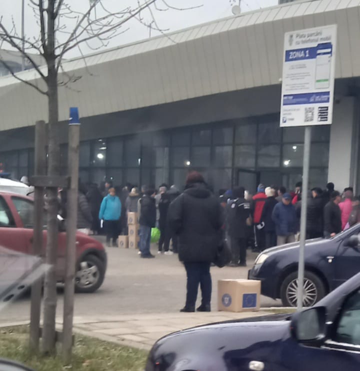 Ajutoarele alimentare ale Uniunii Europene pentru nevoiași au ajuns și se împart la Stadionul Municipal din Târgu Jiu. S-a format o coadă imensă, pe câteva sute de metri: ”Stăm aici de la prima oră. Sperăm să prindem și noi un pachet. Nu știm pentru câte persoane sunt alimentele”, a declarat o femeie.
