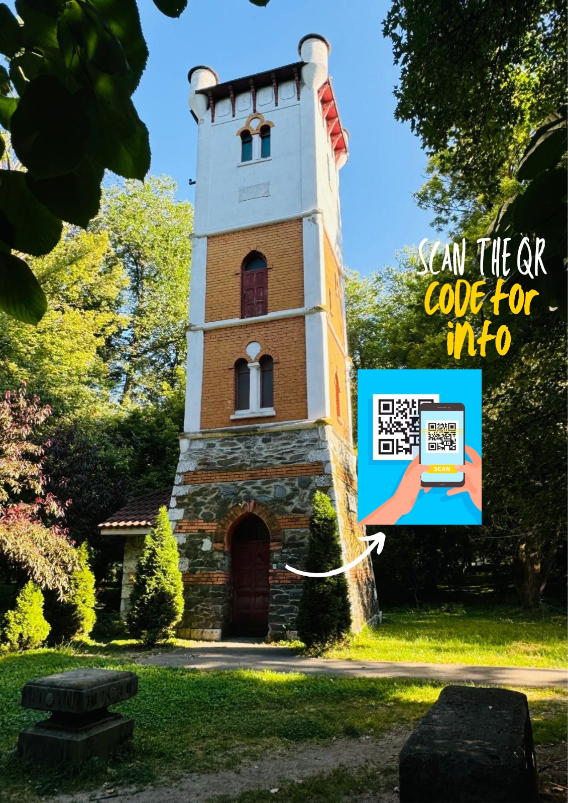 Mai multe puncte turistice din Parcul Central al municipiului Târgu Jiu sunt echipate cu coduri QR.