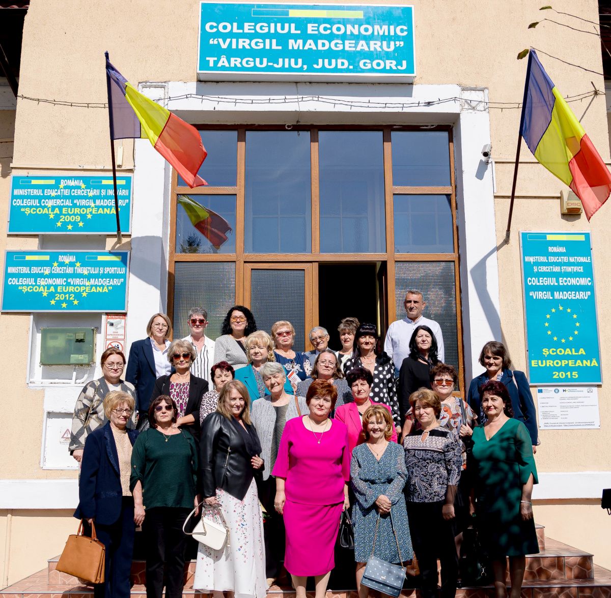 N. Vasilica (Zorilă), Gioancă V. Maria (Călinescu), Giurescu P. Doina (Dobriţoiu), Hodoiu M. Violeta (Asproiu), Hortopan I. Dorina (Jianu), Ionescu C. Elena (Tutilă), Măgureanu A. Ecaterina (Tinică), Mătrăgună Gh. Cristina, Mutu Gh. Marinela (Plavăţ), Nanu V. Vasile, Popescu I. Elena (Ion), Popescu N. Floarea (Pisc), +Stoica V. Constantin, Ţiu N. Ileana (Piţigoi), +Ţolescu C. Janeta, Vâlceanu D. Alin, Vâlceanu Gh. Carmen (Lemnaru), Vlădoianu I. Alieta (Pecingină) şi + Vlădulescu C. Daniela. Din păcate, dintre profesoarele noastre care nu au putut veni la întâlnire amintim pe doamnele Dogaru Elena, directoare, Vasiloiu Silvia (Merceologie), Rădulea Elena (Matematică) şi Hoban Maria (Fizică), dar, mulţumim respectuos pentru prezenţă doamnei dirigintă Neguleasa Ileana (Franceză), domnului prof. Gogonea Vasile (Economie, Filosofie) şi d-lui prof. Carigoiu Titus (Ed. Fizică). Mulţumim pentru prezenţa la festivitate şi domnului profesor Maruis Badea, actualul director al Colegiului Economic «Virgil Madgearu» din Târgu-Jiu.