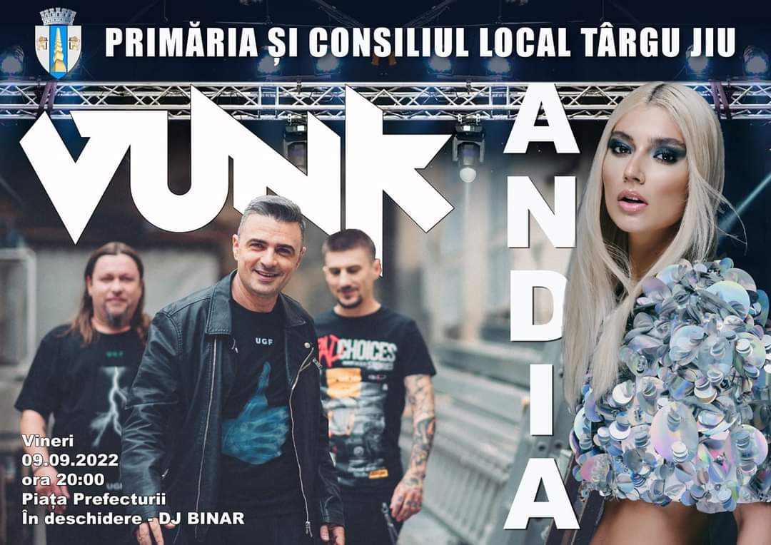 Vunk, Andia și DJ Binar concertează mâine în Piața Prefecturii, de la ora 20:00.