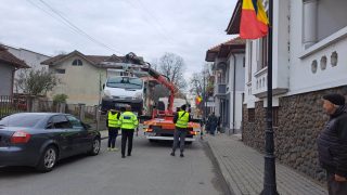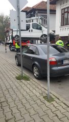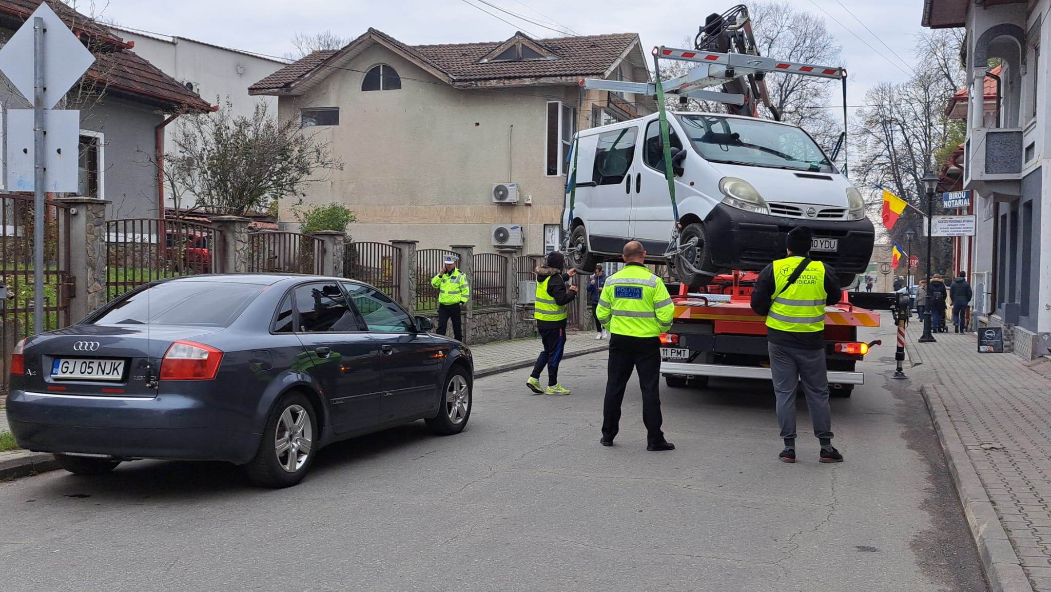 Târgu Jiu, FOTO: Mașină ridicată, stradă blocată