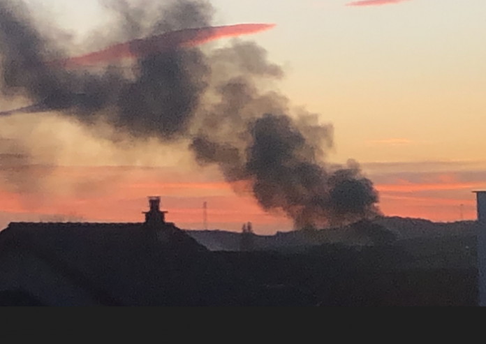 Mai multe mașini de pompieri se îndreaptă spre cartierul Meteor din Târgu Jiu, acolo unde se ridică un fum dens.