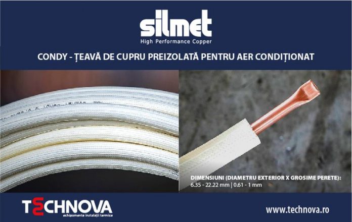 Dezvoltată de Silmet, țeava de cupru colac preizolată Silmet Condy este ideală pentru transportul gazelor de răcire și este fabricată în conformitate cu standarde înalte de calitate (de exemplu, standardul european EN 12735-1, respectiv ASTM B280 – cu grad înalt de curățenie internă). Țeava este prevăzută cu un strat de protecție din polietilenă expandată care asigură un grad ridicat de rezistență la răspândirea vaporilor de apă și în realizarea căruia nu se folosește clorofluorocarbură, produsul nefiind toxic. Țeava se livrează presată mecanic la capete, astfel încât să poată fi menținută curată în interior până la momentul montării. Un alt detaliu  important este acela că țeava Silmet Condy face parte din Clasa 1 de rezistență la foc și poate fi utilizată la temperaturi de exercițiu cuprinse în intervalul -80°C și +120°C.