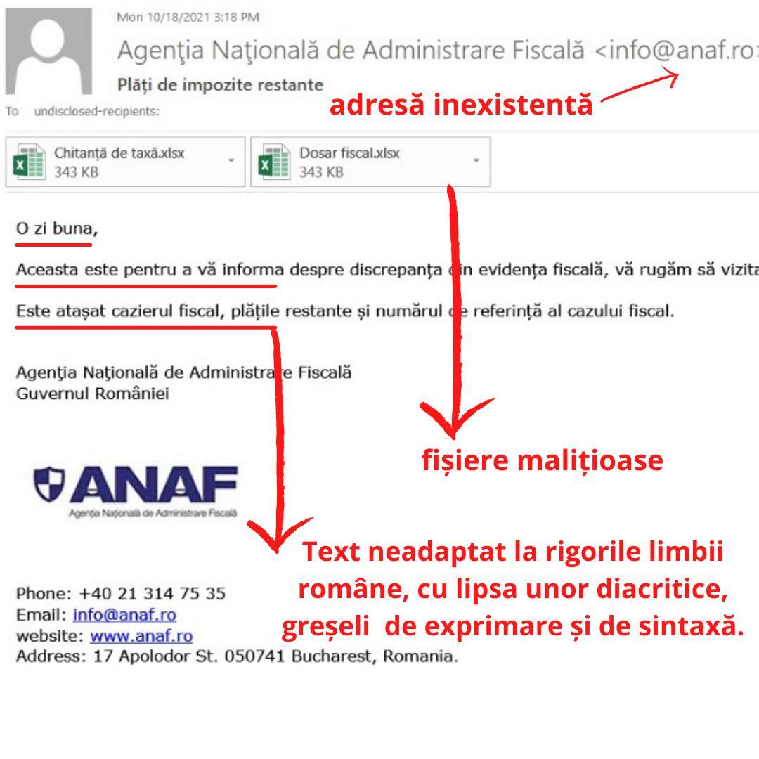 Atenție la e-mail-urile sau sms-urile primite în perioada următoare, care pretind a fi transmise de ANAF), avertizează Directoratul Național de Securitate Cibernetică – DNSC..