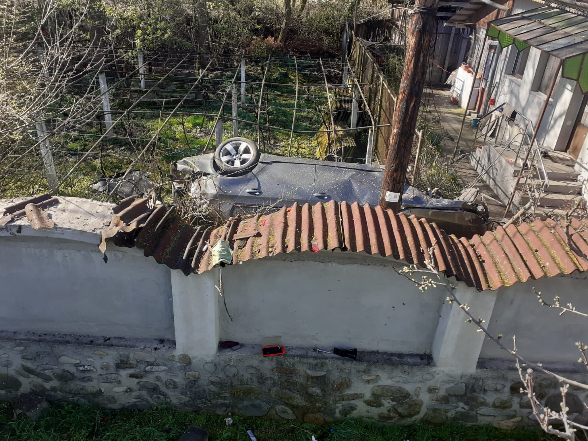 Șoferul, un bărbat din Rovinari, turmentat, a zburat la propriu cu mașina de pe carosabil, peste un gard, aterizând, pe o parte, în curtea unui localnic.
