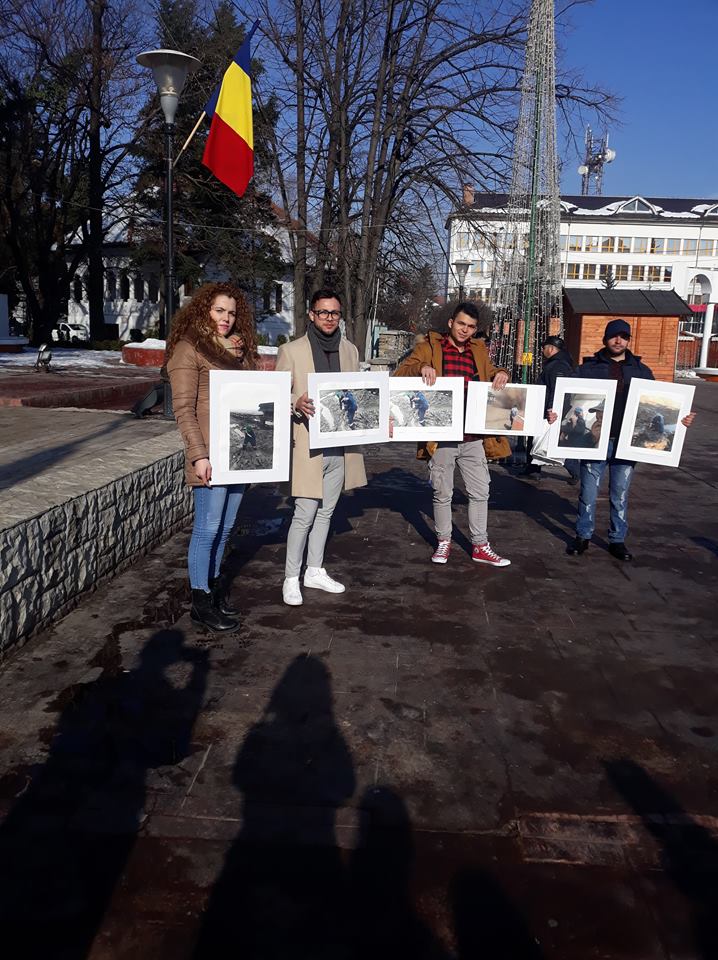 Tineri din TNL Gorj l-au așteptat pe ministrul Energiei, la Prefectura Gorj, cu fotografii din carierele CEO