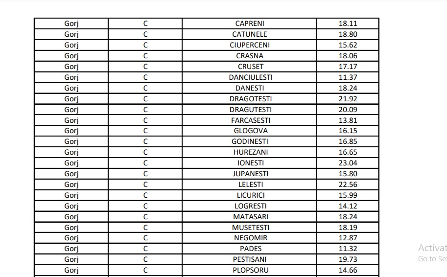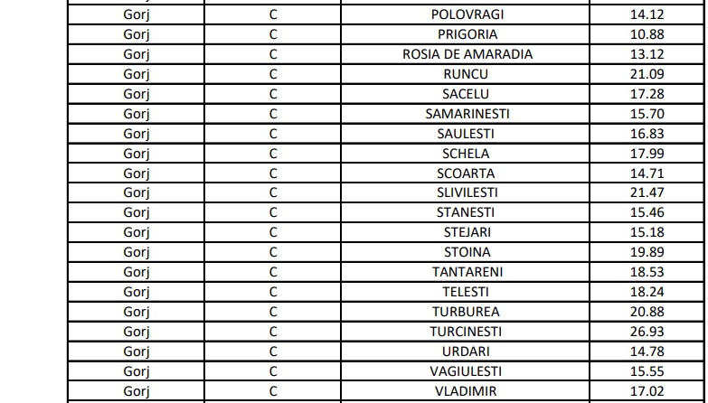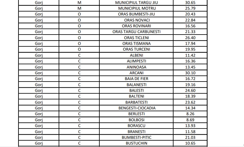 Potrivit datelor publicate de autorități, în urmă cu câteva zile, primele 10 localități din Gorj în funcție de rata acoperirii vaccinale sunt: