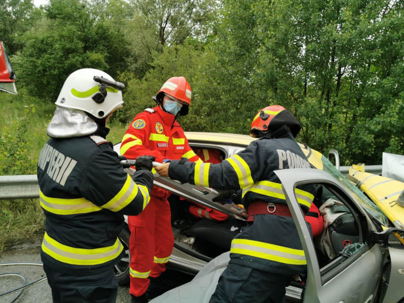 La fața locului au intervenit un echipaj pentru descarcerare, unul SMURD, din cadrul Detașamentului de Pompieri Târgu-Jiu, precum și un echipaj din cadrul SAJ Gorj. ,,Au constatat că, în urma impactului, au rezultat două victime. Ambele victime erau conștiente, însă una dintre acestea a rămas încarcerată. Pompierii militari au intervenit pentru descarcerarea acesteia și acordarea primului ajutor calificat.