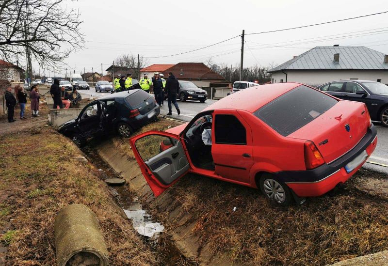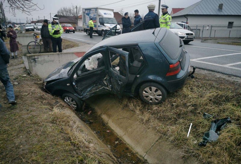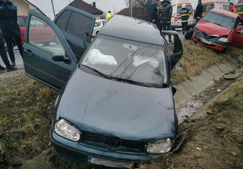 Trei persoane au ajuns la spital, ieri, după impactul dintre două mașini produs pe DE 79, în cartierul Romanești. Polițiștii au efectuat cercetări la fața locului pentru a afla împrejurările în care a avut loc evenimentul, stabilind că vinovat de producerea accidentului a fost un tânăr de 29 de ani, din comuna Telești, care ar fi intrat în depășirea autoturismelor din față și s-a ciocnit cu un autovehicul condus regulamentar de un bărbat de 24 de ani, care virase la stânga pentru a intrat pe un podeț.