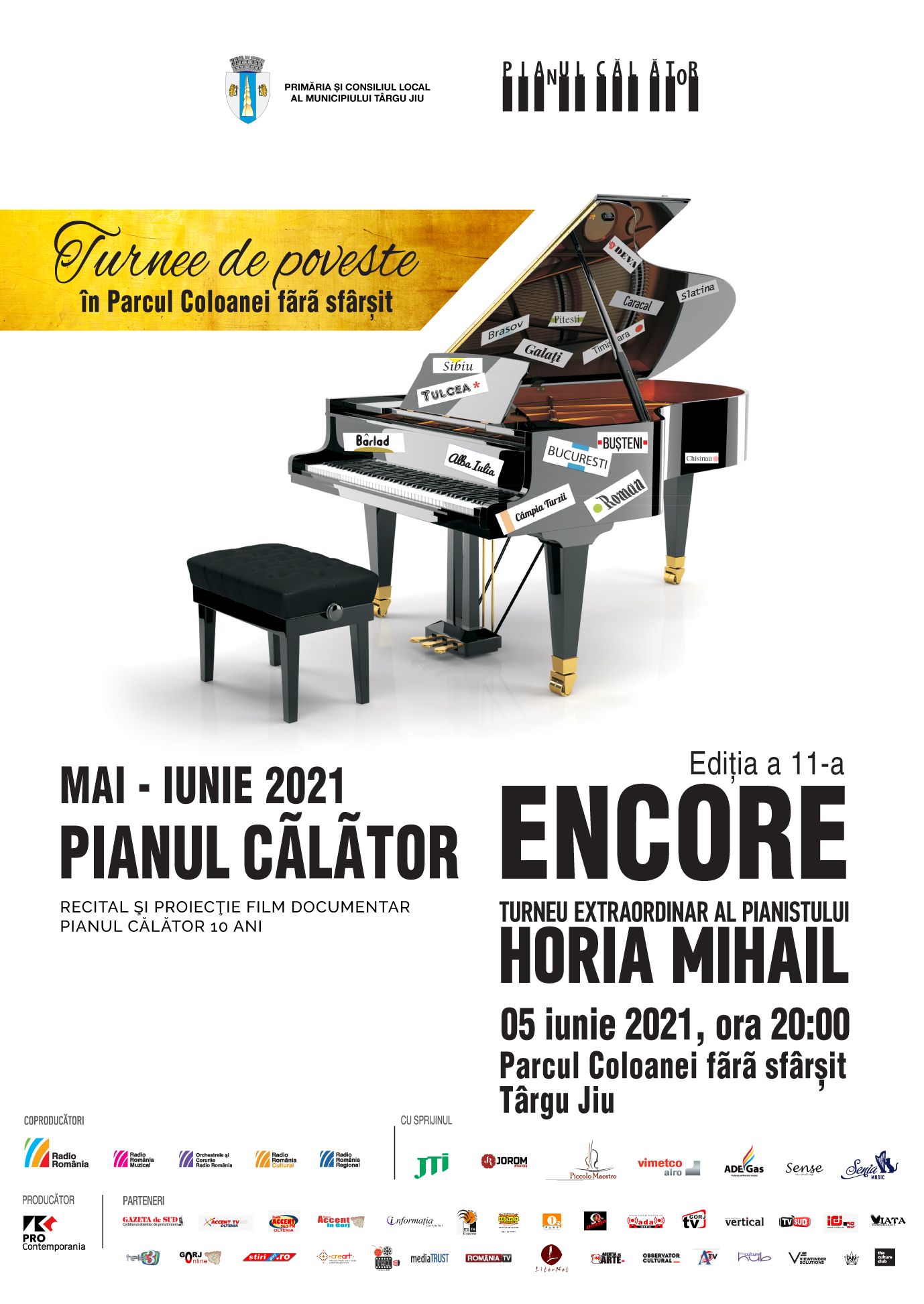 Mari evenimente muzicale naţionale se opresc pentru o seară la Târgu Jiu, din iunie până în septembrie, aducând public şi muzicieni alături, pentru a trăi pe viu emoţia artistică, vegheaţi de Coloana Infinitului a lui Constantin Brâncuşi. Pianul călător, Orchestra Metropolitană Bucureşti, Vioara lui Enescu, Violoncellissimo, Duelul viorilor vă invită la întâlnirea cu muzica bună în Parcul Coloanei fără sfârşit.