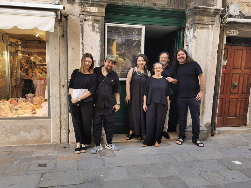 Vernisajul a avut loc pe 5 iulie 2024, la ora 17:00 în spaţiul Piccola Galleria al Institutului Român de Cultură şi Cercetare Umanistică, iar expoziţia va fi deschisă publicului până pe 14 iulie, zilnic, în intervalul orar 14:00–20:00. Expoziţia cuprinde pictură–obiect şi lucrări de grafică digitală (C-print pe dibond şi video 4K). Evocând referinţe culturale, memoria afectivă, memoria gestului, lucrările propun conexiuni între vechi şi nou şi explorează noţiuni precum mit, violenţă, ipocrizie, poftă de putere, dualitate. Artiştii pun în discuţie, în limbaj vizual contemporan, valorile sociale şi condiţia umană în diferite perioade de timp.