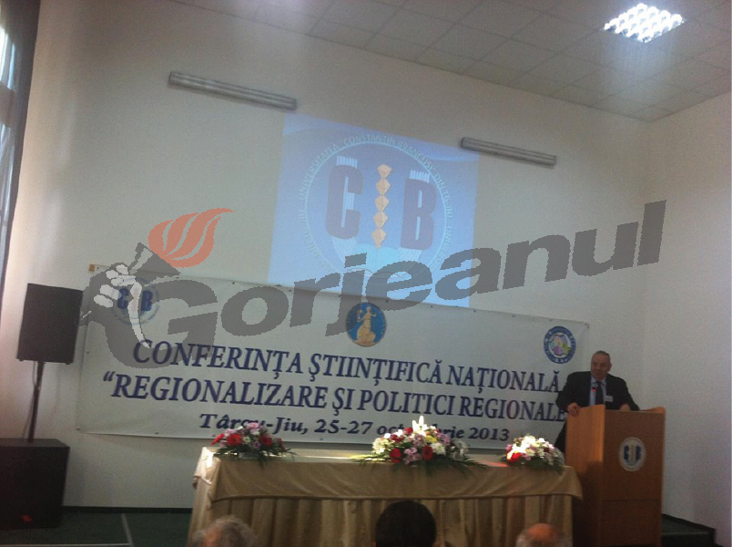 Institutul de Cercetare a Dezvoltării din cadrul Universităţii „Constantin Brâncuşi” din Târgu-Jiu, în parteneriat cu Academia Română şi cu Centrul de Geografie Regională al Universităţii “Babeş-Bolyai” din Cluj-Napoca, au organizat, în perioada 25 – 27 octombrie 2013, Conferinţa ştiinţifică naţională „Regionalizare şi politici regionale”. Printre invitaţii la eveniment s-au regăsit: prof. univ. dr. Andrei Marga – directorul Institutului de Cercetare a Dezvoltării din cadrul Universităţii „Constantin Brâncuşi” din Târgu-Jiu, acad. prof. univ. dr. Păun Ion Otiman – secretar general al Academiei Române, acad. prof. univ. dr. Lucian Liviu Albu – directorul Institutului de Prognoză Economică – Academia Română, prof. univ. dr. Pompei Cocean – directorul Centrului de Geografie Regională al Universităţii “Babeş-Bolyai” din Cluj-Napoca, prof. univ. dr. Dumitru Miron – Academia de Studii Economice Bucureşti. Sâmbătă, la sediul Rectoratului UCB a avut loc şi o lansare de carte: „România şi politici regionale”, lucrare coordonată de Adrian Gorun, Ion Ghizdeanu, Horaţiu Tiberiu Gorun şi Gabriela Radu.