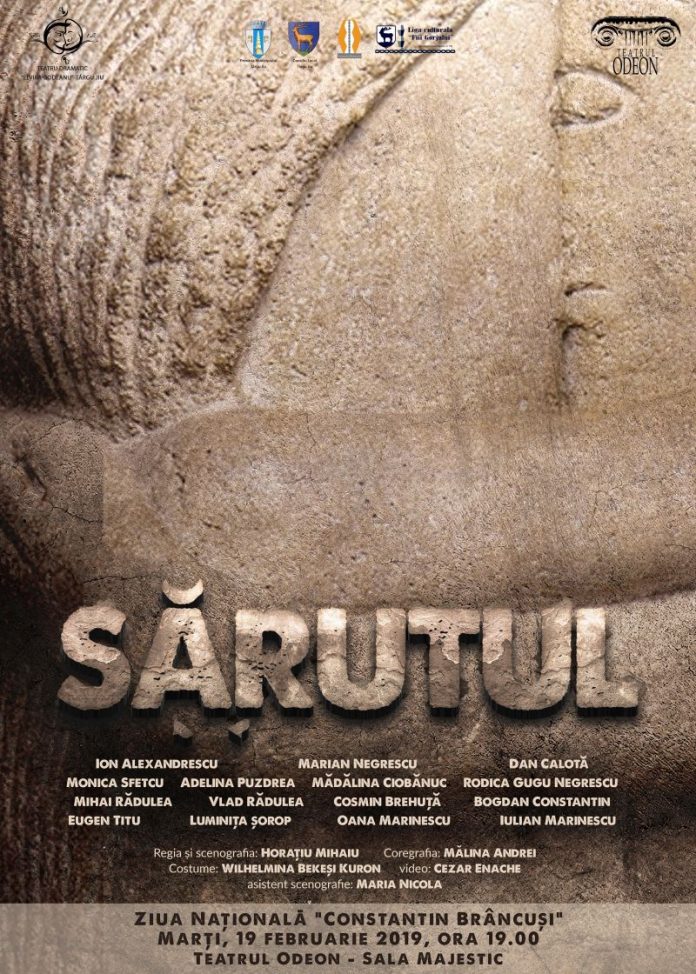 Despre acest spectacol, Cosmin Brehuţă, directorul Teatrului Dramatic “Elvira Godeanu” din Târgu-Jiu, spune că este o onoare, la eveniment urmând a participa invitaţi de seamă. “Referitor la Ziua Naţională Brâncuşi, suntem bucuroşi şi onoraţi să-l sărbătorim pe patronul spiritual al oraşului nostru, în Bucureşti, în deplasare. Suntem bucuroşi că vom fi foarte aproape de kilometrul zero, la Teatrul Odeon, la acest eveniment organizat în parteneriat cu Asociaţia Culturală Fiii Gorjului, cu Asociaţia Acasă la Brâncuşi, cu Instituţia Prefectului şi Consiliul Judeţean. Spectacolul “Sărutul”, în regia lui Horaţiu Mihaiu, eseu vizual-teatral, şi în coregrafia Mălinei Andrei, va fi prezentat pe 19 februarie, la ora 19.00, la Teatrul Odeon din Bucureşti. Este o adevărată bucurie pentru noi pentru că e cel mai bun loc, cea mai bună locaţie în care să putem desfăşura la standardele cele mai apropiate de cele pe care le avem şi noi aici, la sala din Teatrul Dramatic “Elvira Godeanu”, şi suntem mândri că o putem face mai ales că vom avea parte de invitaţi de marcă, atât din partea oficialităţilor de la nivel local, judeţean, cât şi naţional, şi evident că vor fi prezenţi şi foarte mulţi oameni de specialitate, oameni de teatru, directori, critici, cu care împreună sper să avem o seară reuşită. Este adevărat că acest eveniment face parte dintr-un ansamblu de manifestări. Trebuie să amintesc şi de expoziţia de arte vizuale a lucrărilor artiştilor din Gorj, desfăşurată la Centrul Cultural al Ministerului Afacerilor Interne. Este un eveniment realizat cu sprijinul Ministerului Culturii şi al Identităţii Naţionale. Practic, mă bucur că majoritatea instituţiilor municipiului Târgu-Jiu şi ale judeţului Gorj îşi dau mâna în această zi cu adevărat importantă pentru noi şi că putem vorbi despre Brâncuşi şi în deplasare”, a declarat directorul Teatrului Dramatic “Elvira Godeanu”. Piesa “Sărutul”, în viziunea regizorului Horațiu Mihaiu, urmărește să decodifice izvoarele inspirației lui Brâncuși, fără a încerca să ofere un răspuns cert. În acest sens, parcurgând momente esențiale din biografia sa, găsim destule elemente care ar fi putut constitui surse de inspirație pentru opera sa de geniu. “Sărutul” brâncușian, venit ca o reacție la “Sărutul” lui Rodin, întrupează și momentul ruperii artistului de academismul francez și al nașterii sculpturii moderne, pe care Brâncuși o va impune în lume. Se adresează ochiului spectatorilor, lucrează senzorial prin imagini teatrale, expresivitate corporală, sunet și culoare, încercând să redea publicului emoția gestuală a sărutului. Mai precis, este un eseu vizual teatral care evită festivismele, omagiul teatral gratuit, adresându-se în special simțurilor.