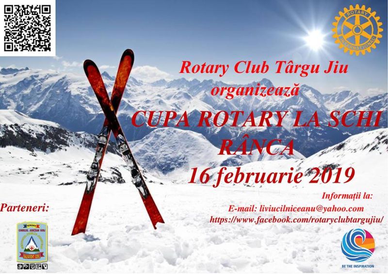 Clubul Rotary Târgu-Jiu organizează sâmbătă, 16 februarie 2019, începând cu orele 10.00, cea de-a XIII-a ediție a Cupei Rotary la Schi, ce se va desfăşura în staţiunea montană Rânca. “Competiția se va organiza pe câte 5 categorii de vârstă la schi, respectiv o competiție pentru snowboard. Vor fi acordate medalii și premii pentru fiecare categorie, precum și Cupa Rotary la Schi pentru cea mai bună performanță. Așteptăm câți mai mulți participanți pe pârtia M1 din stațiunea Rânca pentru a participa la această competiție”, au transmis reprezentanţii Clubului Rotary Târgu-Jiu.
