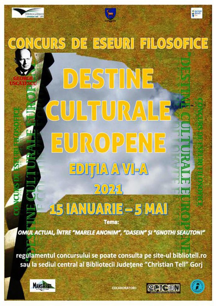 Concursul de eseuri ,,Destine culturale europene” este organizat de Biblioteca Județeană ,,Christian Tell” Gorj și Centrul de Informare Europe Direct Gorj și are ca scop ,,constituirea unui cadru deopotrivă formal și nonformal de consolidare a cunoștințelor și intereselor culturale și științifice ale acestora. Această inițiativă propune dezvoltarea unei gândiri reflexive asupra culturii, asupra timpului și spațiului, asupra existenței umane sub aspect socio-cultural”. Patronul spiritual al concursului este filosoful George Uscătescu (n. 5 mai 1919, Crețești, Gorj – d. 11 mai 1995, Madrid), filosof, estetician, eseist, poet și sociolog român, membru de onoare din străinătate al Academiei Române de la 10 septembrie 1991, inițiatorul revistei ,,Destin”. 2021 este anul în care se împlinesc 102 de ani de la nașterea filosofului gorjean, care a trăit și creat o bună parte din viață în Spania, în exil, așa cum au făcut și unii alți mari oameni de cultură români în diverse țări, în afara lagărului comunist: Mircea Eliade, Constantin Virgil Gheorghiu, Vintilă Horia, Aron Cotruş, Pamfil Şeicaru, Emil Cioran, Horia Stamatu, Monica Lovinescu, Virgil Ierunca, Ştefan Baciu, Alexandru şi George Ciorănescu ș.a.m.d.. Principalul obiectiv al concursului este acela de a oferi elevilor oportunitatea de a scrie eseuri filosofice, adecvate unor teme stabilite. Tema acestei ediții a concursului este <>.