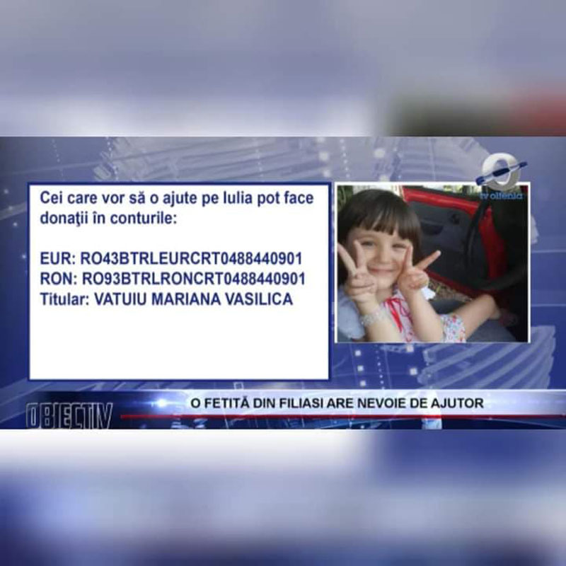 Maria Vasilescu, fosta primăriță de Țânțăreni, alături de fiica sa Maria Vasilescu, consilier județean, implicând și instituția publică din localitate, au pus umărul la sprijinirea micuței paciente Iulia, în vârstă de 5 ani, care are leucemie. Fetița se află în Italia alături de mama ei, la o clinică de prestigiu, unde va suferi un transplant.