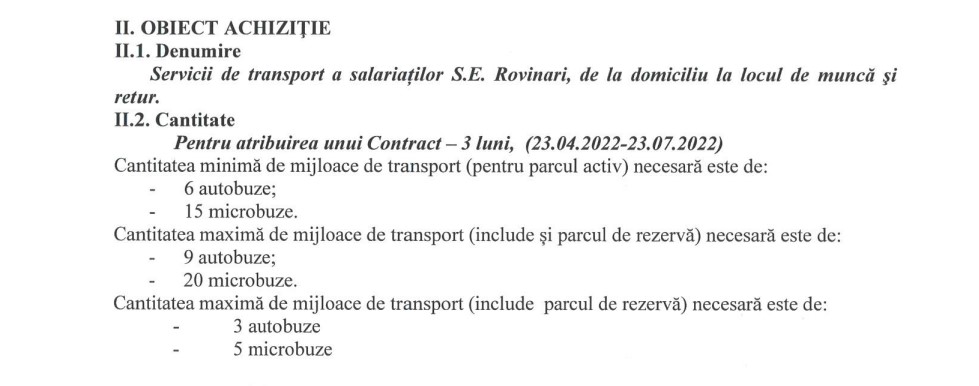 Complexul Energetic Oltenia pune la bătaie circa un milion de lei pentru transportul salariaților de acasă la Termocentrala Rovinari și retur. Contractul va fi încredințat prin negociere, fără invitație prealabilă la o procedură concurențială de ofertare, și va fi semnat pe trei luni, respectiv pentru perioada 23 aprilie – 23 iulie.