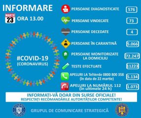 Până astăzi, 23 martie, pe teritoriul României, au fost confirmate 576 de cazuri de persoane infectate cu virusul COVID – 19 (coronavirus). Dintre cele 576 de persoane confirmate pozitiv, 73 au fost declarate vindecate și externate (51 la Timișoara, 17 la București, 3 la Craiova, unul la Constanța și unul la Iași).