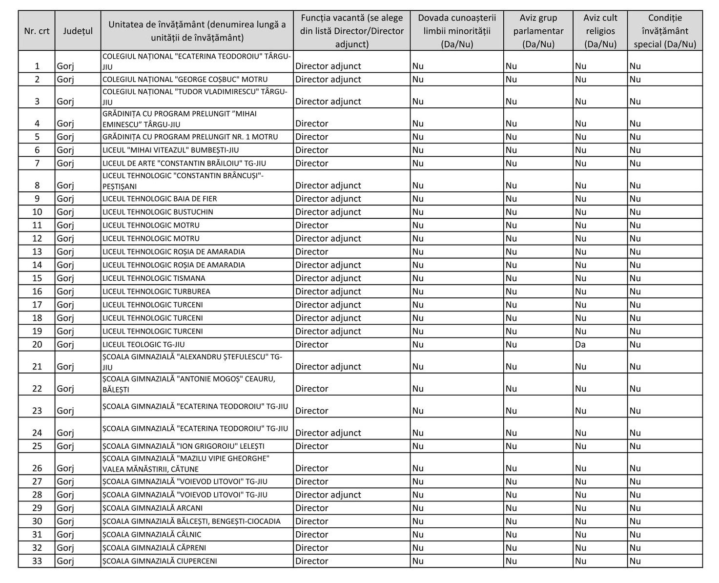 Sunt vacante 34 posturi de director și 18 posturi de director adjunct.