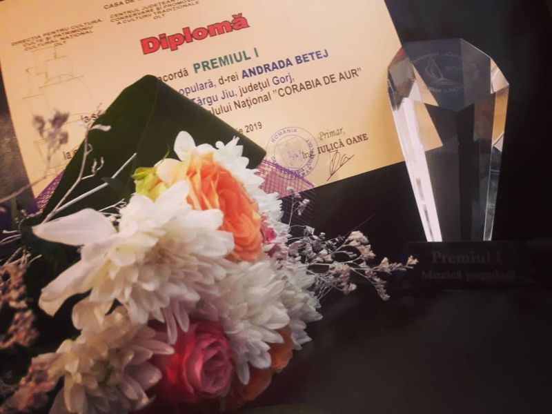Andrada Betej, cursantă a Școlii Populare de Artă (ŞPA) Târgu-Jiu, coordonată de prof. Nicoleta Argint, a obținut Premiul I în cadrul Festivalului Național ,,Corabia de Aur” 2019. „Felicitări interpretei si coordonatorului!”, a transmis conducerea Şcolii Populare de Artă Târgu-Jiu. Desfășurat timp de 45 de ani fără întrerupere, Festivalul Naţional „Corabia de Aur“, devenit unul de referinţă în domeniu şi o rampă de lansare pentru numeroşi artişti de muzică uşoară şi populară, a fost organizat de Primăria şi Consiliul Local Corabia, în colaborare cu Centrul Judeţean de Cultură şi Artă Olt. Manifestarea care se desfăşoară neîntrerupt de peste patru decenii şi jumătate a fost organizată în Piaţa Independenţei din localitatea Corabia şi a avut ca obiectiv principal conservarea şi promovarea patrimoniului cultural-artistic şi istoric local. Gala Laureaţilor s-a încheiat duminică, în data de 22 septembrie, când au fost desemnați câștigătorii festivalului. Concursul s-a adresat tinerilor solişti de muzică populară şi uşoară din toată ţara, cu vârsta cuprinsă între 16 şi 30 de ani, şi a avut drept scop descoperirea şi valorificarea talentelor muzicale şi interpretative. Prima ediţie a festivalului-concurs de muzică populară, folk şi uşoară, „Corabia de Aur” a avut loc în anul 1973, la iniţiativa primarului oraşului, Mircea Florea şi a directorului Casei de Cultură din acea vreme, Ion Delu.