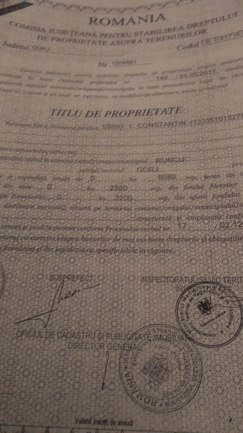 Pensionarul din minerit spune că a avut grijă de proprietate ca ochii din cap în ultimul deceniu, plătind pentru aceasta taxe și impozite locale la Primăria Runcu. În februarie, a aflat însă cumplita veste de la tăietorii de lemne din zonă care i-au comunicat proprietarului că pădurea sa întinsă pe o lungime de 380 de metri și o lățime de 16 m nu mai există, fiind tăiată în rast ca pe acolo să treacă un drum forestier.