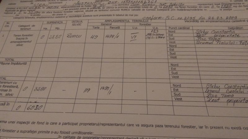 Bucata de pădure, dispărută peste noapte în luna februarie, a fost moștenită de octogenarul din Dobrița de la părinți. Omul s-a judecat aproape trei ani de zile ca să o obțină, iar abia în 2009 a avut câștig de cauză și a fost pus în posesie.