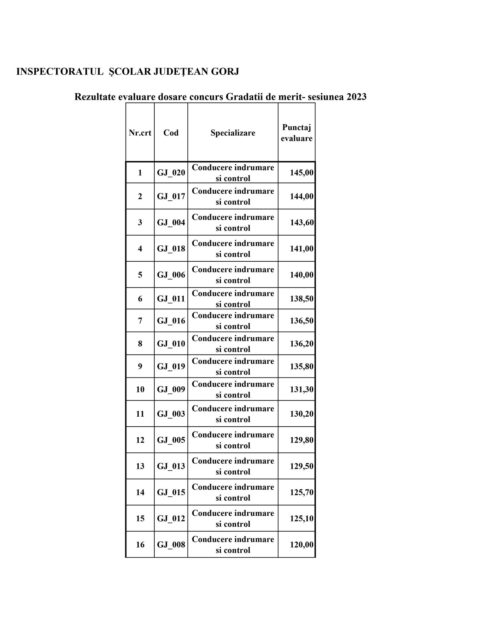 Cel mai mic punctaj, de 15 puncte, a fost obținut de o educatoare. Profesorii nemulțumiți pot depune contestații. „Contestațiile privind punctajele la concursul pentru acordarea gradațiilor de merit sesiunea 2023 se depun la secretariatul ISJ Gorj în perioada 19-21 iunie 2023, în intervalul orar 08.00-11.00 și 13.00-16.00. Afișarea rezultatelor se face în format anonimizat. Codurile de anonimizare vor fi trasmise pe email-ul personal al fiecarui candidat”, a transmis ISJ Gorj.