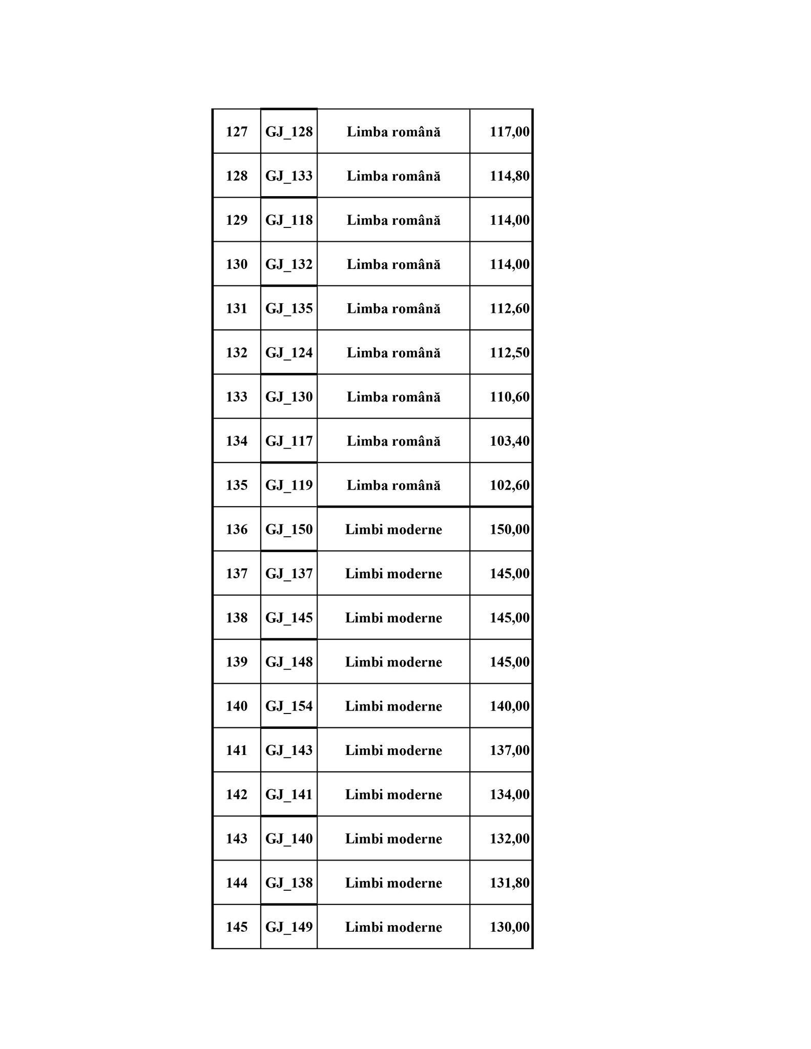 Multe dosare s-au înregistrat și în cazul profesorilor de limbi moderne. Sunt 19 dosare și zece gradații, un profesor fiind evaluat cu punctajul maxim – 150 de puncte.