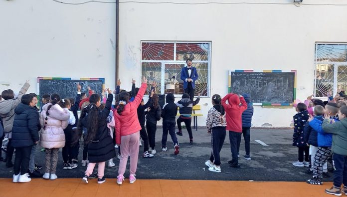 “Minunații lui Verdini” au sosit, ieri, la Școala Gimnazială „Ecaterina Teodoroiu” din Târgu Jiu și au oferit elevilor un mic spectacol de magie, spre deliciul și încântarea celor mici.