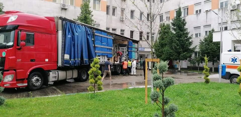 Un tir încărcat cu donații de materiale sanitare, mobilier și îmbrăcăminte a ajuns la spitalul din Rovinari!