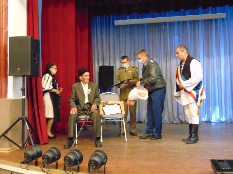 După recitarea versurilor patriotice de către cei patru elevi, una dintre eleve a transmis un mesaj emoționant sărbătoritului. „Veteranii de război, un segment social aparte, foarte rar mai sunt întâlniți astăzi în viață. Cei mai viteji dintre români – ultimii veterani ai țării, reprezintă o mică parte a tezaurului uman al Oștirii române.