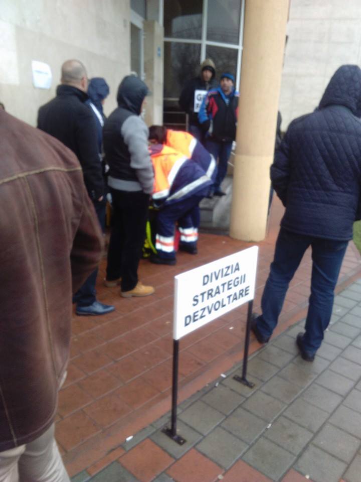 În urmă cu câteva minute unul dintre greviștii foamei de la CEO a căzut din picioare. El primește acum îngrijiri medicale de la personalul de pe ambulanța chemată la fața locului de colegii grevistului. Emil Bârsanu este unul dintre primii protestatari care au intrat în greva foamei luni dimineața.
