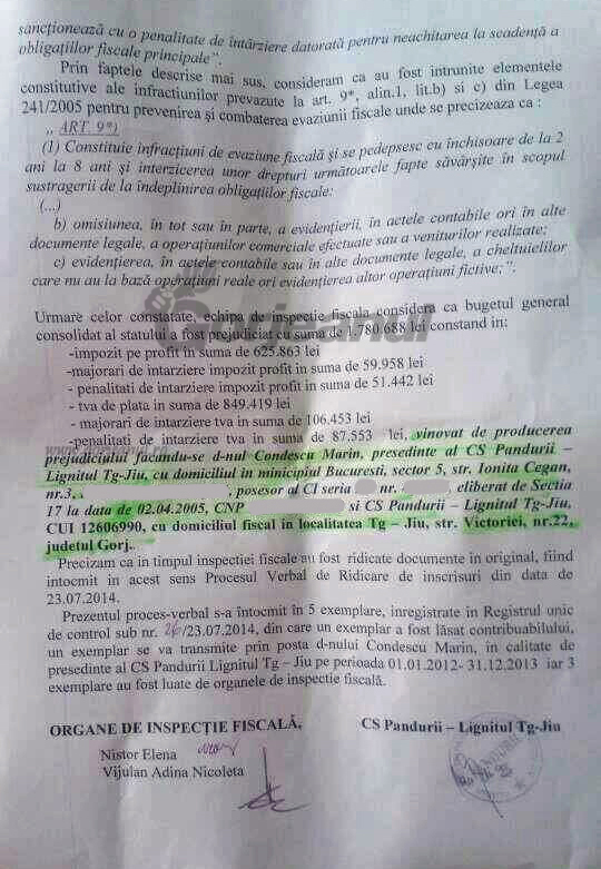 Mădălina Berbecel, concubina lui Marin Condescu, fostul președinte al CS Pandurii Lignitul Târgu-Jiu, inculpat într-un dosar de corupție și trăgător de sfori și în prezent la echipa de fotbal din municipiu, a făcut o afacere de un miliard și jumătate de lei vechi, fără TVA, cu clubul condus de tatăl copilului ei. Este vorba despre vânzare prin firma SC CAESAR 76 SRL a terenului de 20.016 mp situat în apropiere de fabrica de cauciuc Artego, mai exact în zona Ciocârlău. Terenul arabil în cauză, cumpărat de Berbecel în noiembrie 2012, la un preț de nimic, se vehiculează doar câteva sute de milioane de lei vechi, ajunge să fie vândut la aproape două miliarde de lei, dacă se calculează la sumă și TVA, clubului Pandurii, condus de Marin Condescu. Terenul, potrivit actului de vânzare cumpărare din 2013, se învecinează la nord cu Olga Cureleanu, persoana de la care, se vehiculează, că Berbecel ar fi cumpărat de fapt terenul arabil în 2012. Terenul respectiv fusese oferit lui Cureleanu, se vehiculează în zonă, de la Primăria Târgu-Jiu, în schimbul unui alt teren utilizat de instituția publică. Primăria i-ar fi oferit proprietarei inițiale o parcelă mai mare, iar acesta ar fi vândut spre Berbecel o parte, contra unei sume de un sfert de miliard de lei vechi. Reclamanții suțin că au solicitat informații autorității publice locale, în sensul aflării proprietarului inițial al terenului respectiv, dar până în prezent nu au primit răspuns la cererea respectivă.