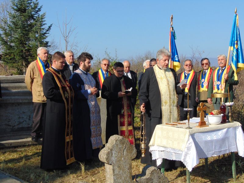 Aici, la mormântul bravului general român, s-a săvârșit o slujbă de pomenire de către soborul de preoți, apoi s-a prelevat și de aici pământ pentru Alba Iulia. Am mers cu toții în biserică, la invitația preotului paroh Păunescu unde s-a sigilat urna și semnat actul de autenticitate.