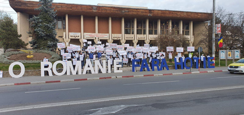 O Românie Fără Hoție a fost unul dintre mesajele participanților afișat în centrul municipiului.