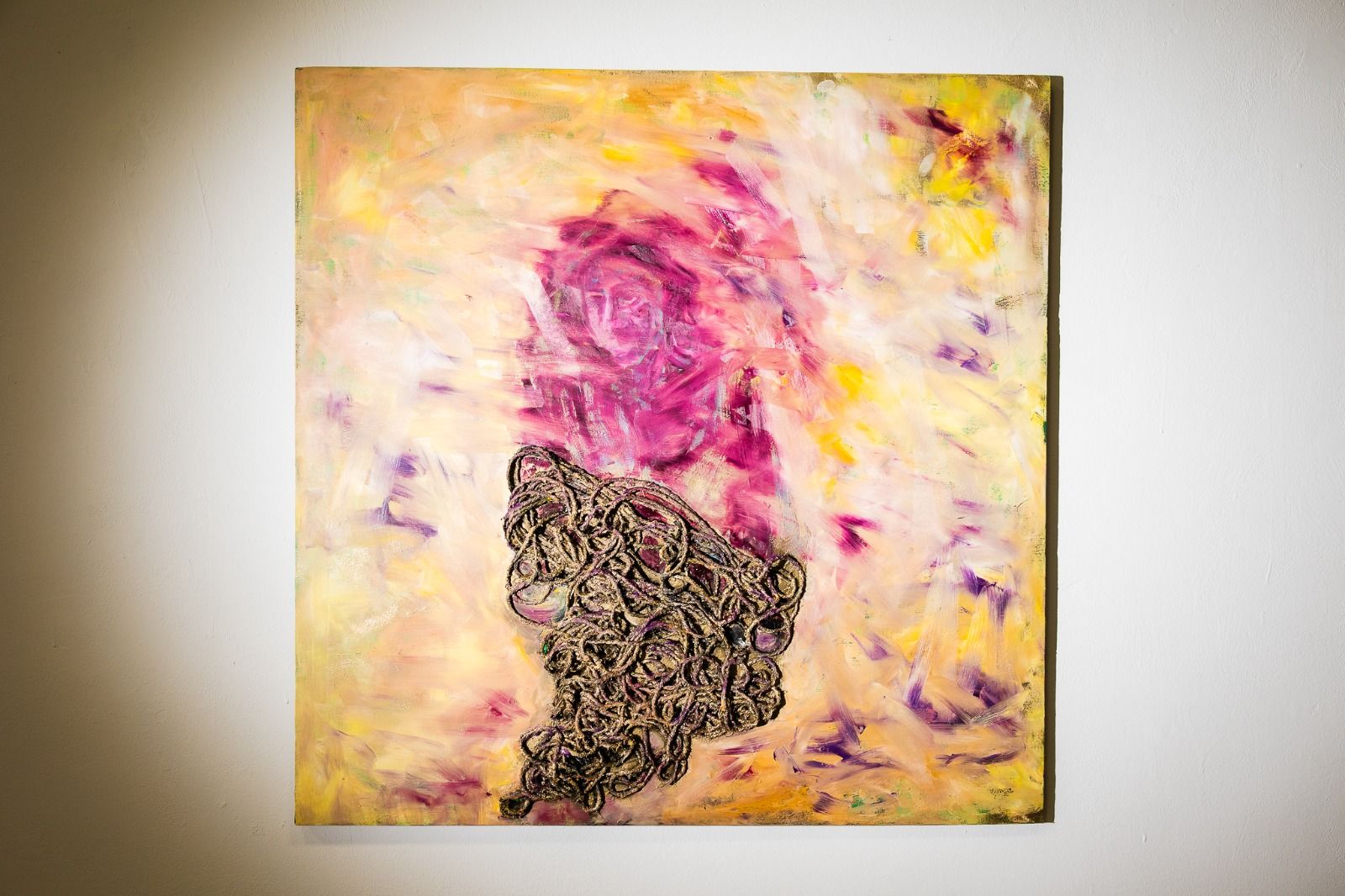 Sculptura în lemn, cu o poziție centrală, pare să facă legătura între toate celelalte lucrări aflate în diversele încăperi (sala roșie, sala verde etc.).