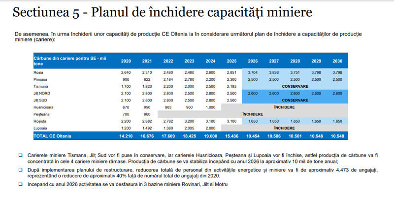 au existat reacții ale politicienilor dar care nu au consistență și nu reprezintă un răspuns concret la posibilitatea reală în care Gorjul, și implicit România, va pierde cel mai mare producător de energie pe cărbune, deși aceștia sunt membri marcanți ai PNL și PSD, partide aflate la guvernare. de înțeles că într-o asemenea situație dramatică, județul Gorj va ajunge cu cea mai mare rată a sărăciei din țară. Așa cum am relatat în urmă cu trei zile, în baza unor informații date de angajații CEO, există un plan separat de cele două variante cunoscute pe care le redăm mai jos, în care capacitățile de producție a energiei pe cărbune ale CE Oltenia vor fi eliminate total.