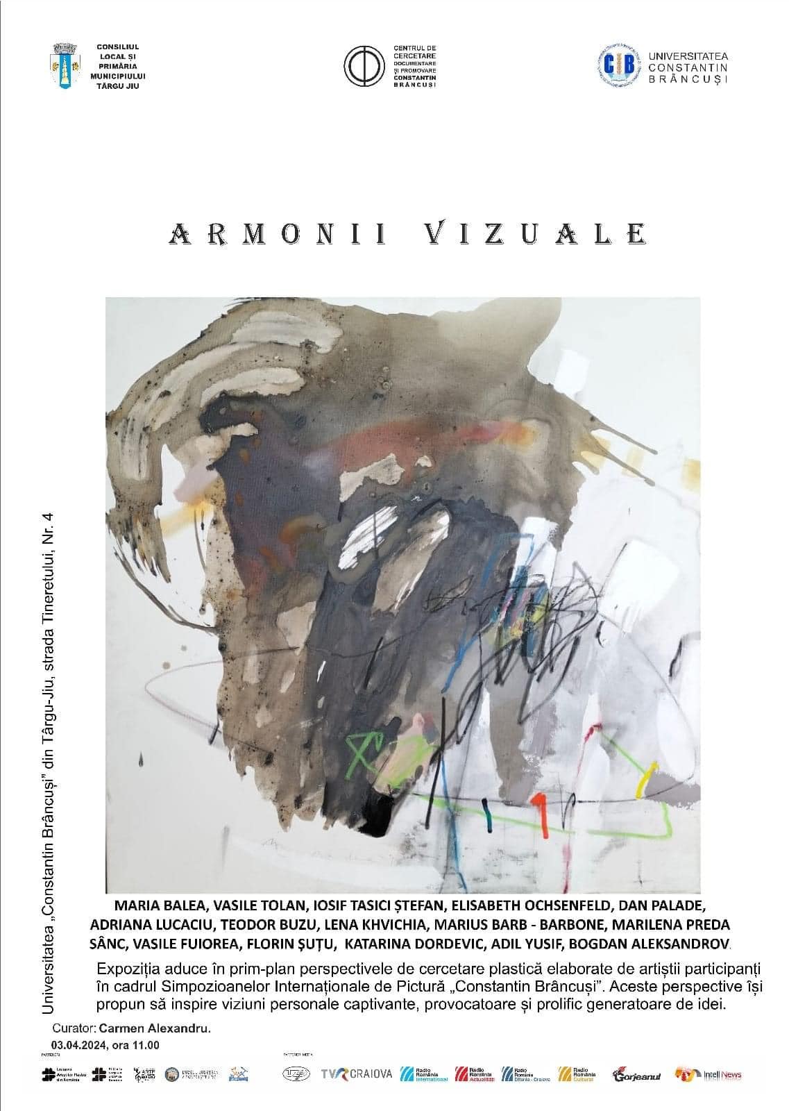 Expoziția „Armonii Vizuale” va fi vernisată mâine la sediul Universității ”Constantin Brâncuși” Târgu Jiu. Evenimentul este organizat de Centrul de Cercetare, Documentare și Promovare „Constantin Brâncuși” și aduce în prim-plan lucrările artiștilor participanți în cadrul Simpozioanelor Internaționale de Pictură „Constantin Brâncuși”. Vor fi expuse lucrări ale pictorilor din România, Bulgaria, Lituania, Serbia și Azerbaijan. Vernisajul expoziţiei va avea loc în data de 3 aprilie 2024 în holul universității din strada Tineretului, nr. 4, ora 11:00, și va putea fi vizitată timp de 90 de zile.