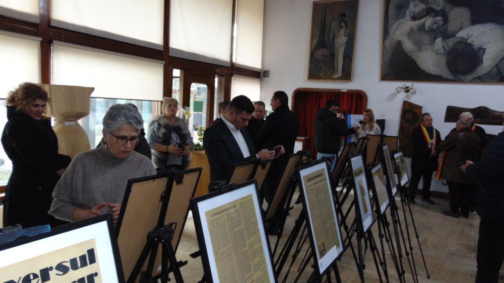 În lipsa domnului prof. drd. Andrei Popete Pătrașcu, inițiatorul acestei expoziții, doamna Marinela Strîmbulescu, președinte OFA UGIR Gorj, a prezentat detalii despre expoziție. „Expoziția prezintă un set de 15 articole apărute în presa vremii din perioada interbelică (1923 – 1939), atât despre opera lui Constantin Brâncuși, dar și despre viața acestuia, care a fost iubit de francezi, admirat de germani și cumpărat de americani. El face parte dintre cele mai importante personalități culturale ale României, care au fost cărțile noastre de vizită ce au adus România într-o lumină extraordinară pe plan internațional”, ne-a informat doamna Strîmbulescu. Apoi a precizat „Cercetarea, documentarea și selectarea celor 15 articole prezente la această expoziție, a fost făcută de profesorul drd. Andrei Popete Pătrașcu care, fiind la București, petrece foarte mult timp în arhivele capitalei de unde scoate și prezintă publicului larg o serie de documente importante din istoria culturii românești.”