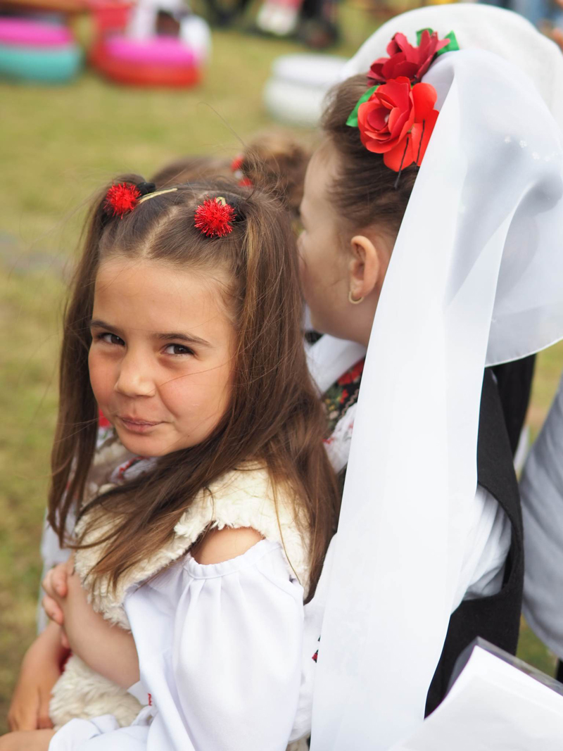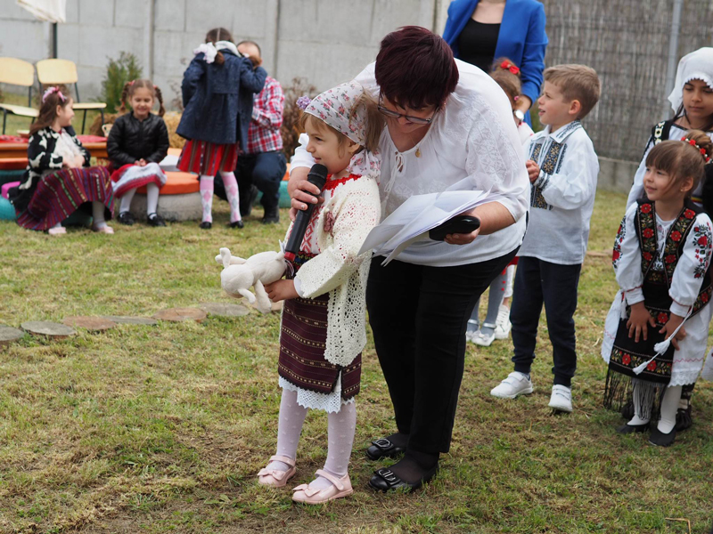Vremea a ținut cu organizatorii, astfel că în curtea grădiniței, când sub razele soarelui când a lipsei acestuia, participanții s-au bucurat de o atmosferă caldă, de emoțiile puternice ale copiilor dar și de muzica populară, cântată foarte frumos, de două eleve membre în acest proiect educațional.
