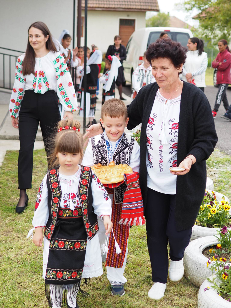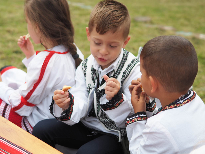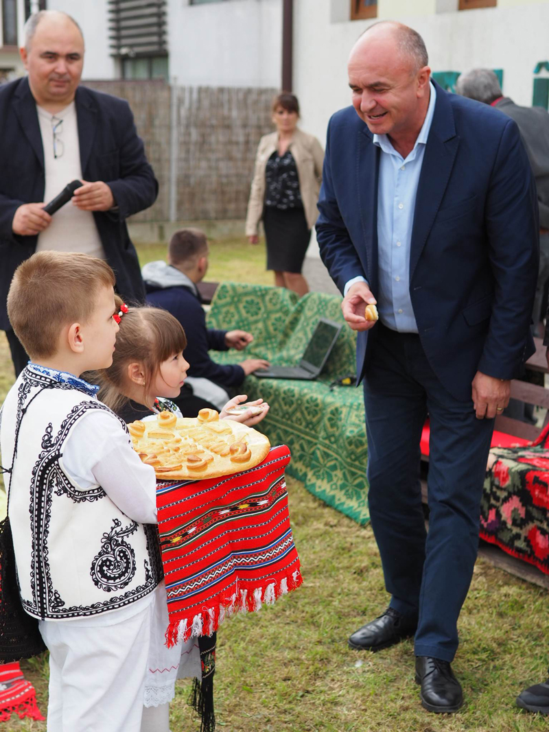 De altfel, o pâine împletită, cu un praf de sare, a fost cea care a arătat ospitalitatea gazdelor în fața celor prezenți, bucăți din gustosul preparat ajungând apoi la copiii participanți la manifestări.