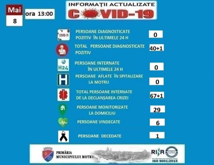 Nicio persoană din Motru nu a mai fost internată cu suspiciune de infectare cu SarsCov2, începând cu data de 5 mai, anunță primarul din Motru, Gigel Jianu.