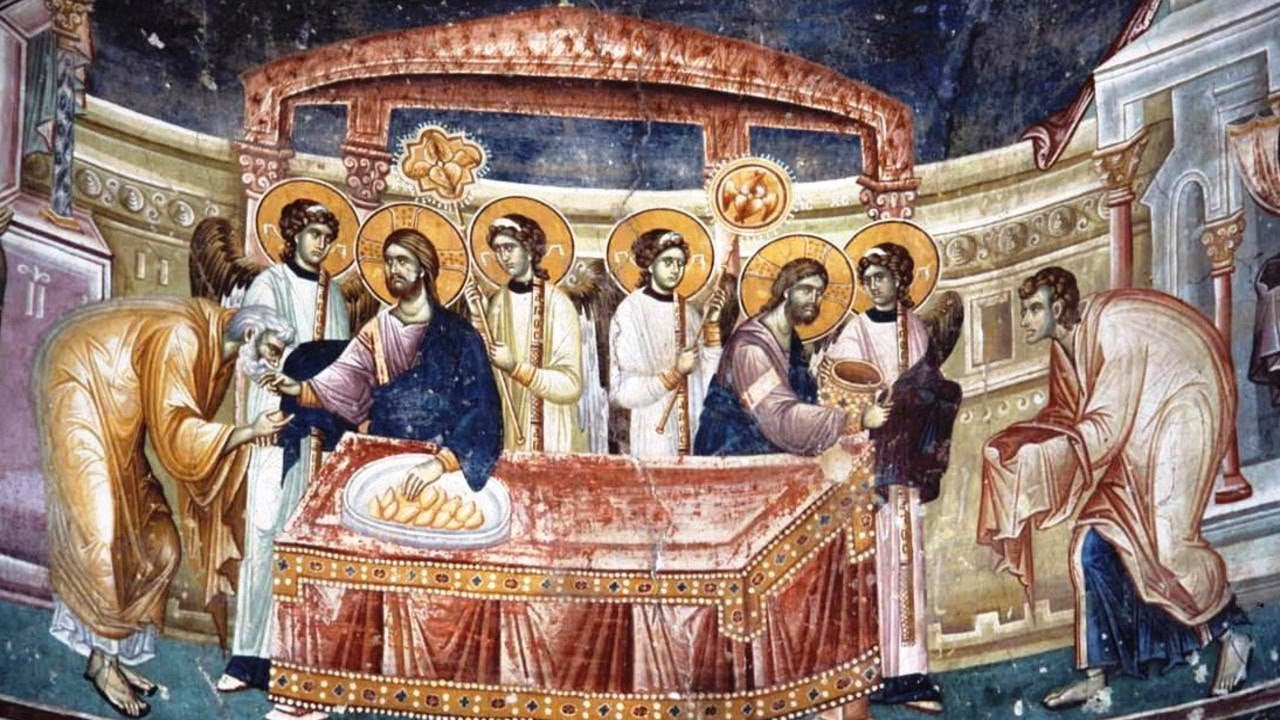 În Duminica a 28-a după Rusalii (a Sf. Strămoşi după trup ai Domnului); Ap. Sf. Strămoşi; Coloseni 3, 4-11; Ev. Luca 14, 16-24 (Pilda celor poftiţi la cină); glas 3, voscr. 6, la Sfânta Liturghie oficiată în Biserica Ortodoxă Română, textul din Sfânta Evanghelie ne apare ca un «catalog» al strămoşilor Mântuitorului nostru Iisus Hristos, de fapt, ca o enumerare a cetei de proroci, drepţi şi sfinţi ai Vechiului Testament, care au pregătit venirea Sa în lume şi au ţinut vie credinţa într-un singur Dumnezeu, Care va trimite pe Fiul Său spre mântuirea oamenilor. Aceasta, pentru a scoate în evidenţă perenitatea chemării Lui Dumnezeu Care rămâne permanent în ipostaza Celui ce organizează cina. De aceea, Sfinții Părinți au văzut adesea în acest episod o metaforă euharistică, pentru că în esenţă, cina reprezintă Împărtășirea de prezența reală a lui Hristos, Care ne arată că: ,,Întru credinţă pe Strămoşi i-ai îndreptat, printr-înşii logodindu-Ţi mai înainte Biserica”, mai ales că trebuie să folosim această lectură ca pe un prilej de a ne gândi, mai intens decât o facem de obicei, la cât de onorantă este această invitație și ce lucru important îl reprezintă pentru noi, faptul de a-i da curs. Aşadar, Pericopa evanghelică ne spune că Hristos ne oferă un ospăț în Împărăția Sa, iar, marea sărbătoare la care suntem invitați să participăm este venirea Sa în lume, care privește în mod egal pe fiecare om. Cu toții suntem chemați să primim, încă din această viață, ceea ce Dumnezeu a pregătit pentru fiii Săi din veșnicie, iar aceasta începe de la botez, când viața noastră devine o viață sfinţită, căci nu sunt mulți cei care au ales să creadă că le-a fost prezentat Hristos, iar, Dumnezeu trimite pe Fiul Său spre mântuirea oamenilor şi Naşterea Domnului este evenimentul crucial care a făcut trecerea de la legea veche, prin cei poftiţi la cină!