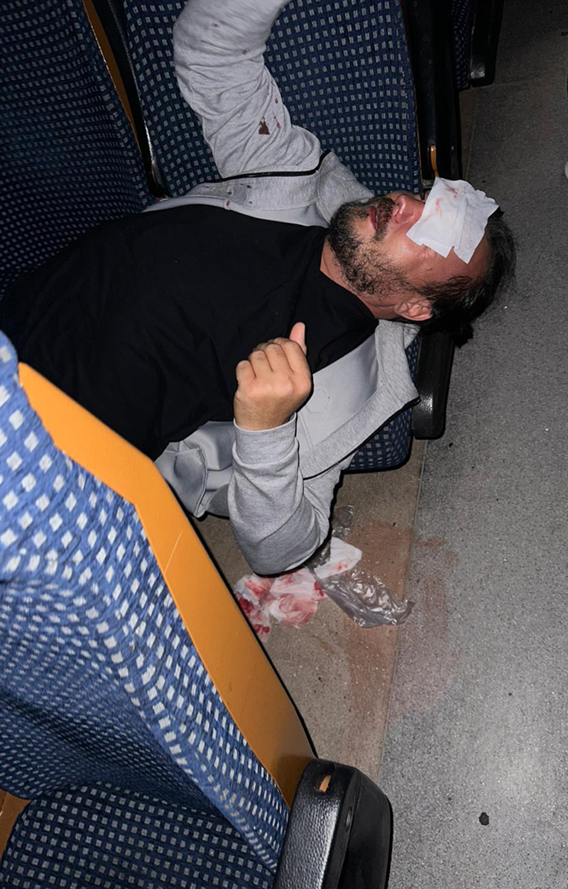 Bărbatul s-a ales cu răni multiple pe față și, cel mai probabil, va rămâne cu o cicatrice pe frunte ca urmare a impactului cu un corp dur, acesta neștiind de ce anume s-a lovit. Atât de repede s-a întâmplat totul încât nu a avut timp să își dea seama ce s-a întâmplat. „Mă uitam pe telefon, în timp ce iubita mea dormea pe două scaune lângă mine. Într-o secundă mă uitam pe telefon și în următoarea secundă totul era haos, atât de repede s-a întâmplat. Eu am vrut să sun la 112, dar controlorul de tren tot insista să nu sunăm că este el acolo, deși el nu ne ajuta cu nimic. Ni s-a închis telefonul și la 112, am insistat, ne-au întrebat câți suntem și unde ne aflăm. Le-am spus că nu avem lumină, că suntem în câmp. Era haos total. Erau bagaje peste tot. Era un grup care venise de la aeroport de la Craiova și erau numai trolere împrăștiate pe acolo. Toate au căzut în capul nostru și pe noi. Celor care trebuiau să ne ajute nu li s-au dat informații corecte, nu ne găseau. Spuneau șoferii de la salvări că s-au învârtit vreo 10 minute ca să ne localizeze.