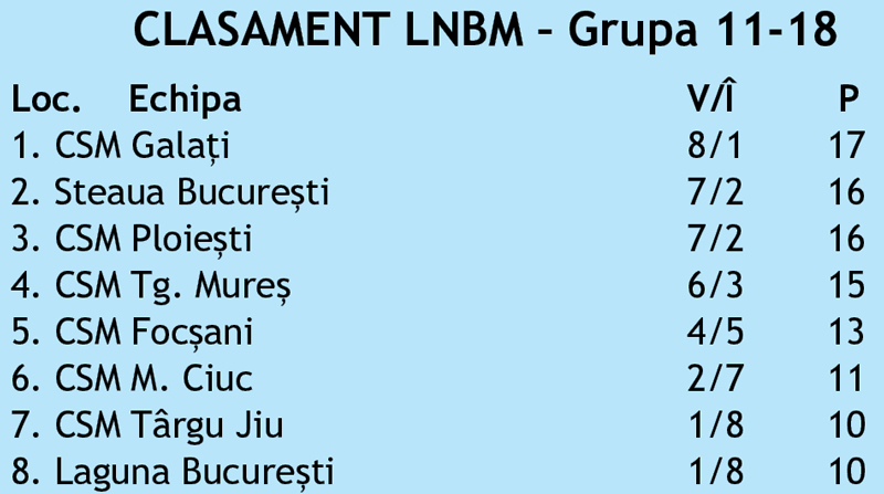 Echipa de baschet CSM Târgu Jiu trebuie să obțină neapărat victoria în meciul de sâmbătă cu Laguna București, dacă jucătorii gorjenilor vor să aibă avantajul terenului propriu măcar în ultima serie din meciurile decisive. Elevii lui Kresmir Basic au pierdut până acum, la limită, toate cele trei confruntări disputate în Grupa 11-18, ultima chiar după o repriză de prelungiri. Directorul tehnic Claudiu Alionescu speră ca soarta punctelor să fie alta după meciul din acest weekend. ,,Este un meci foarte important pentru noi. Întâlnim, poate, principala contracandidată la evitarea retrogradării. Este o echipă cu aceeași linie de clasament ca și noi. Spre deosebire de noi, în etapa precedentă au reușit o victorie de moral, extrem de importantă, împotriva echipei din Miercurea Ciuc. Doza de moral este diferită în cele două tabere, noi am pierdut confruntarea cu Focșani. Principala noastră preocupare, este să redresăm echipa din punct de vedere psihic, pentru că nu este ușor să treci peste o înfrângere în prelungiri. În același timp, jucătorii conștientizează importanța meciului. Vrem să debutăm și noi în această grupă cu o victorie, pentru că jucăm acasă”, a precizat Alionescu. Din păcate, veștile nu sunt bune în ceea ce privește jucătorii accidentați.