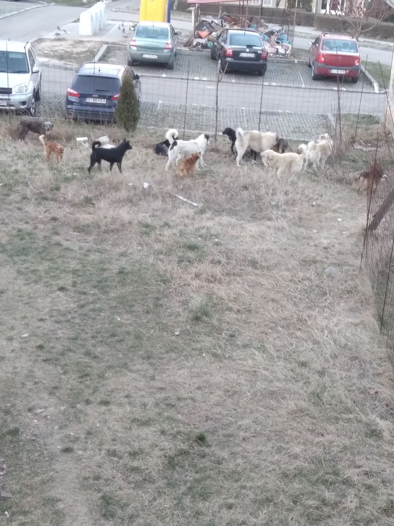 Câinii circulă în fața școlilor dar și în fața primăriei fără că autoritatea locală să miște un deget.