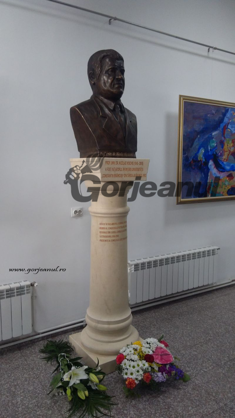 Bustul realizat la inițiativa Senatului Universității ,,Constantin Brâncuși” din Târgu-Jiu, în memoria și cinstea profesorului universitar doctor Nicolae Mischie, fost cadru didactic al instituției și cel care a pus bazele înființării UCB în 1992, a fost dezvelit sâmbătă, în incita sediului universitar din Debarcader. Mai exact, bustul a fost amplasat în holul Facultății de Științe Economice și a Facultății de Științe Medicale și Comportamentale a UCB. Evenimentul, deși organizat la final de săptămână, s-a bucurat de prezența câtorva zeci de persoane.