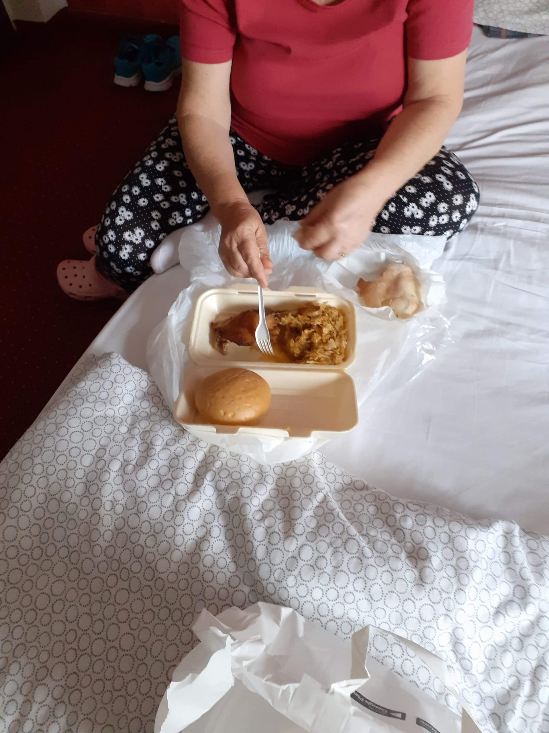 Cazații spun că mâncarea nu li se aduce la cameră ci sunt chemați pe hol să-și ridice hrana, personalul motivând că: ,, noi nu suntem femei de serviciu”.