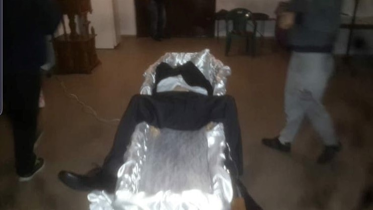 Familia mortului a plătit cele necesare firmei Mitropoliei fără să știe că în momentul în care ruda lor era pregătită să fie băgată în coșciug, câțiva salariați ai societății l-au luat în derâdere pe decedat. Acesta a fost pus crăcănat în coșciug, i s-a pus chiar o țigară în gură și a fost fotografiat în poziții comice. Unul dintre foștii salariați ai firmei a făcut publice una dintre fotografiile care circulau deja între angajații Arhi San Lazarus, cu mențiunea că astfel de glume s-au mai făcut și cu alți decedați.