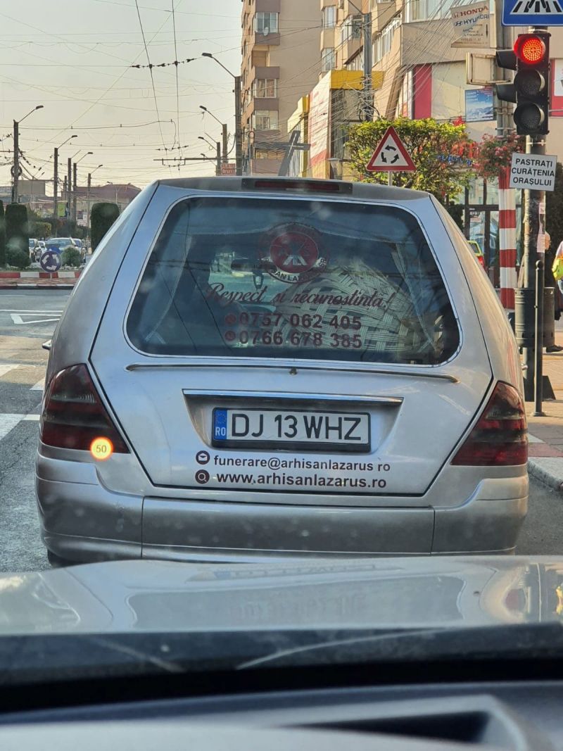 La finalul săptămânii trecute situația s-a repetat. Mașina funerară a fost surprinsă în trafic la Târgu-Jiu încărcată în aceeași manieră.Coșurile nu se vedeau însă pline. Firma a fost amendată, cu luni în urmă, de inspectorii sanitari-veterinari cu 300 de lei pentru mașina neautorizată.